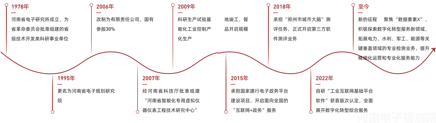 河南省电子规划研究院有限责任公司其前身是河南省电子研究所,1978年10月经省革命委员会编制委员会批准组建为省级技术开发类科研事业单位,1995年更名为河南省电子规划研究院,2006年11月改制为有限责任公司。